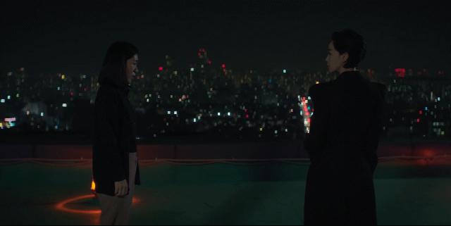 늦은 밤, 차서영은 방송국 옥상으로 권여진을 불러냄.