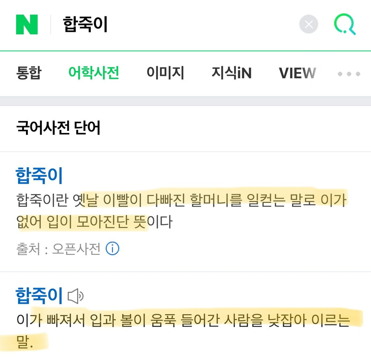 이거 동네에 말 못 하시는 사람 살았는에 어른들이 몇동 합죽이 라고 하길래 어릴때 우리 아파트 살던 애들은 합죽이가 뭔지 알아서 절대 안 따라했거든,,