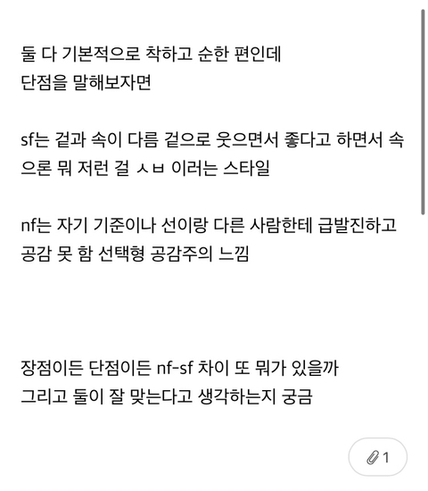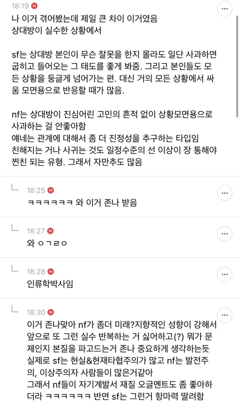 [스크랩] [흥미돋]sf 랑 nf 차이점 말해보는 달글 (둘은 짝꿍인 것인가 상극인 것인가🧐🧐🧐🧐🧐🧐)