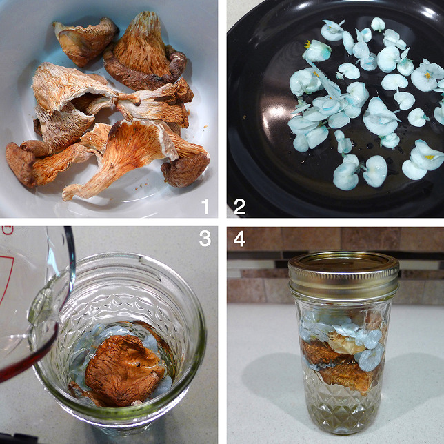 3. 버섯, 꽃 1온스, 보드카 1컵 결합