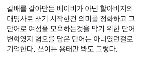 (갈아마신 베이비 라는 말 자체는 들어봤고 낙태한 여자라는 뜻으로 저렇게 불렀을걸. 갈배라는 단어랑 연결짓지는 못했었음)