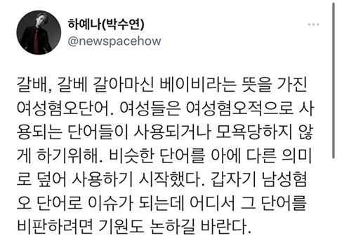 나도 웬만한 남혐어, 여혐어 어원 다 알고 있다고 생각했는데 이건 처음 알았고