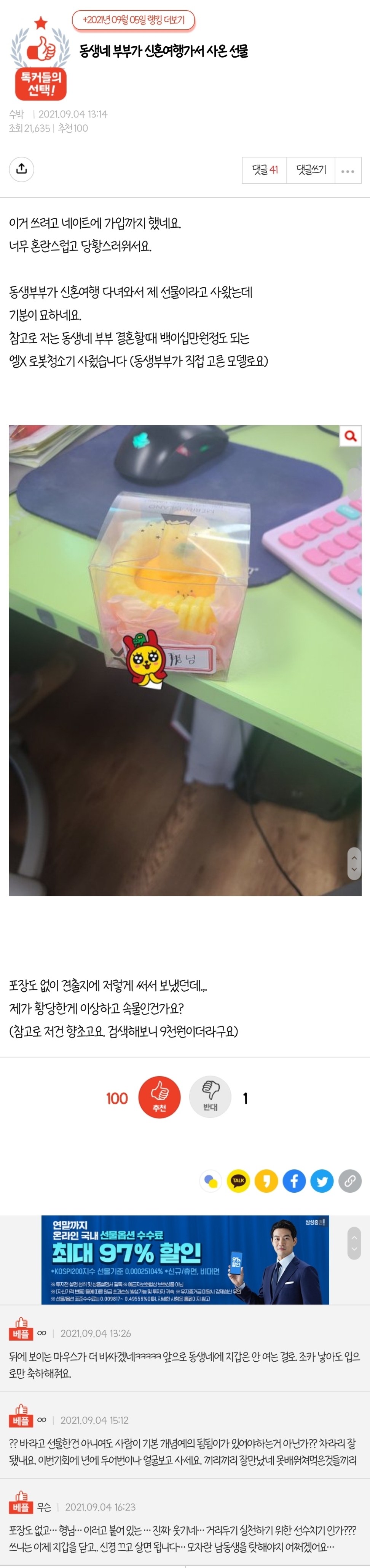작성자로또일등되게해주세요 작성시간 21.09.08 회사에 뿌리는 답례품 아니고?