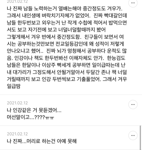 ㄹㅇ 보통 공부머리 안좋은애들이