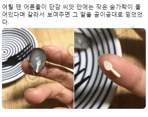 [기타]감 씨앗 안엔 작은 숟가락이 있음.jpg 작성자레오밤밤|작성시간21.09.09|조회수30,109 목록 댓글 40 글자크기 작게가 글자크기 크게가 출처 : 여성시대 레오밤밤헐 몰랐어 ㅋㅋㅋㅋ 다음검색 현재 게시글 추가 기능 열기 북마크 공유하기 신고 센터로 신고 댓글 댓글 40 댓글쓰기 답글쓰기 댓글 리스트 작성자똘츄 | 작성시간 21.09.09 스펀지에서 보고 맨날 감 먹을 때 씨 반으로 갈라서 저거 꺼냈는데 ㅎㅎㅎ 작성자나는세상에서라면이제일조아 | 작성시간 21.09.09 이거 첨보는 여시들은 설탕 1감스푼 이런 말 한번도 못들어봣어? 작성자아우룸 | 작성시간 21.09.09 감씨수저 작성자떨레엠 | 작성시간 21.09.09 떡잎인가봐 귀엽다 작성자백합대주주 | 작성시간 21.09.09 조미료 넣을때 쓰면 괜찮더라 댓글 전체보기