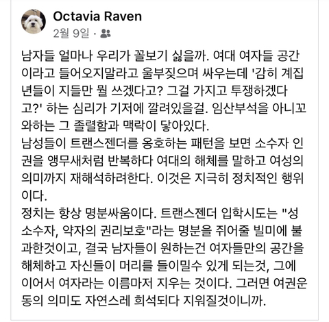 트젠의 여대입학 반대하는 여자들은 워마드다 이건가 ㅋㅋ