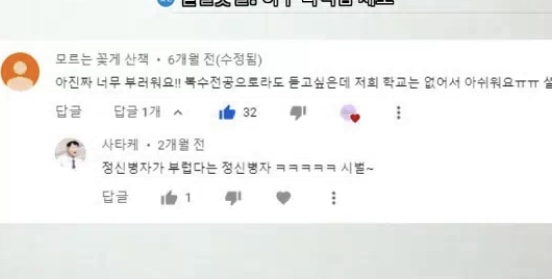 쌍욕, 군대 안가냐는 댓글 등등은