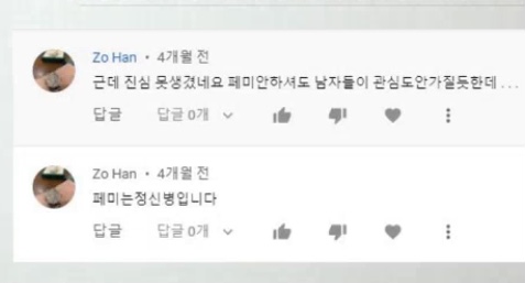 페미는 정신병, 못생겼다, 남자같다