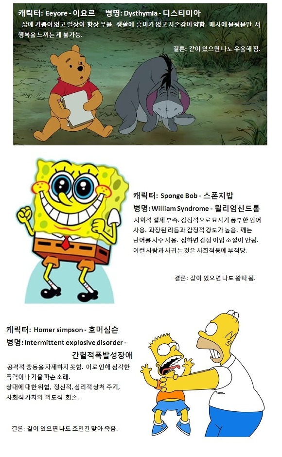 [흥미돋]만화 카툰 캐릭터들의 정신병 작성자에머시스트|작성시간13.02.22|조회수4,798 목록 댓글 13 글자크기 작게가 글자크기 크게가 2011.6.20이후 적용 자세한사항은 공지확인하시라예 출처: 여성시대 에머시스트 ㅋ큐ㅠ난 스폰지밥+호머심슨.... 아, 몰랐는데 그러고보니 만화 캐릭터도 저런 정신병이 ㄷㄷㄷ 문제있으면 말해줘 ㄷㄷ 다음검색 현재 게시글 추가 기능 열기 북마크 공유하기 신고 센터로 신고 댓글 댓글 13 댓글쓰기 답글쓰기 댓글 리스트 작성자에머시스트 작성자 본인 여부 작성자 | 작성시간 13.02.22 ★★아니 여기 여시들 왜이렇게 회피성이 많아 ㄷㄷㄷㄷㄷㄷㄷㄷㄷㄷㄷㄷㄷㄷㄷㄷㄷㄷ??★★ 작성자유노유노넌너무멋져 | 작성시간 13.02.22 DSM-5에서 간헐적 폭팔 장애 저거 빠짐 ㅋ.ㅋ 작성자미우라 료스케 | 작성시간 13.02.22 회피성인격장애;; 작성자Portgas.D.Ace | 작성시간 13.02.22 이요르 너무 조아 작성자행쇼요정 | 작성시간 13.02.22 찰리 브라운 어째 친근해보인다 했어...... 댓글 전체보기
