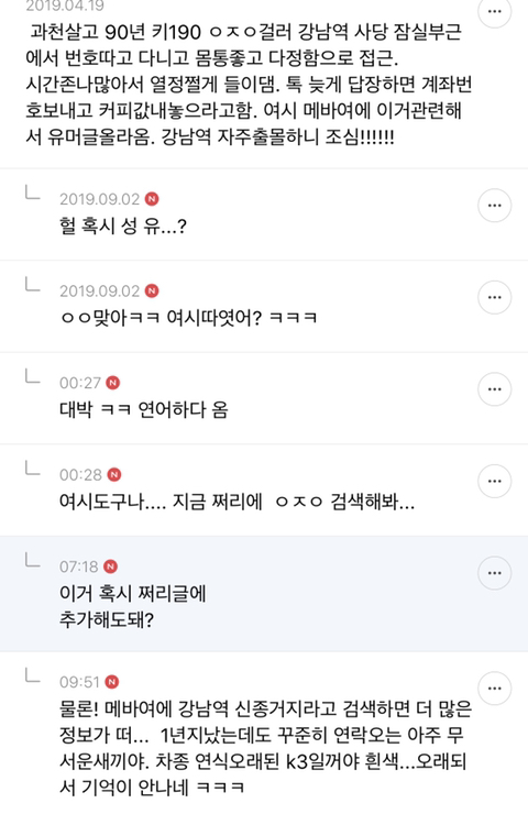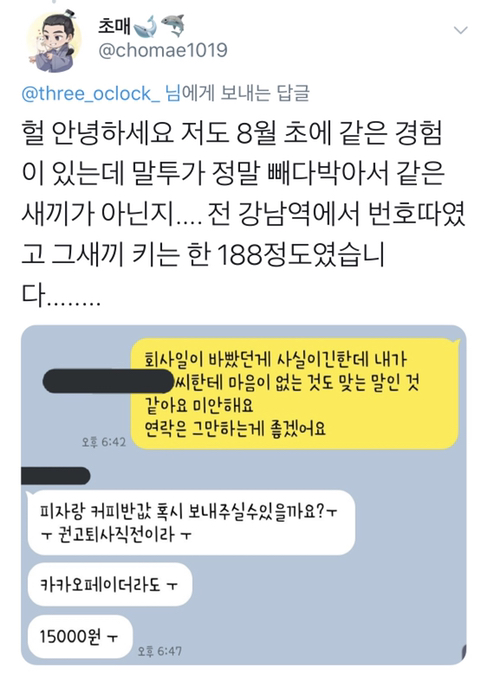 [스크랩] [흥미돋]강남역에서 번호따는 188 냄져 'ㅇㅈㅇ' 조심하자 +보돕보 댓글추가 작성자효옷까따|작성시간21.09.14|조회수6,468 목록 댓글 10 글자크기 작게가 글자크기 크게가 출처 : https://twitter.com/three_oclock_/status/1168127292104560642?s=21댓글보니 당한 여시들 많네보돕보 달글에도 올라왔었어서 캡쳐해놈메버여에도 진출했었다네 뭐하는새끼야이거ㅋㅋㅋㅋ이건 메바여 진출한 글http://m.cafe.daum.net/subdued20club/VETW/35040?svc=cafeapp 다음검색 스크랩 원문 : *여성시대* 차분한 20대들의 알흠다운 공간 현재 게시글 추가 기능 열기 북마크 공유하기 신고 센터로 신고 댓글 댓글 10 댓글쓰기 답글쓰기 댓글 리스트 작성자맥도날드 슈비버거 | 작성시간 21.09.14 시발 개그 아님? 개콘망한이유~ 작성자푸르게 | 작성시간 21.09.14 ㅉㅉ 작성자고모자 | 작성시간 21.09.14 ㄹㅇ 뭘까..? ㅈㄴ 신종 카드깡인가..? ㅋㅋㅋ진짜 별... ㅋㅋㅋㅋㅋㅋㅋㅋㅋㅋㅋㅋㅋ 도대체뭘위해저러는거야..감도안잡힘 작성자리츠초코 | 작성시간 21.09.14 ㅋㅋㅋㅋㅋㅋㅋㅋㅋㅋㅋㅋㅋㅋㅋㅋㅋㅋㅋㅋㅋ아 개웃겨 작성자11시599분 | 작성시간 21.10.02 존나웃겨 ㅋㅋㅋㅋㅋㅋㅋ 댓글 전체보기