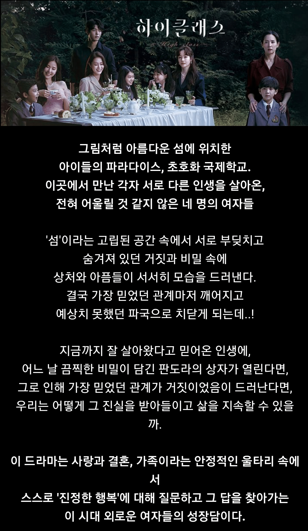 상위층 엄마들 + 교육열 + 자극적인 장면 + 치정극 + 수단 방법 가리지 않는 욕망 충족