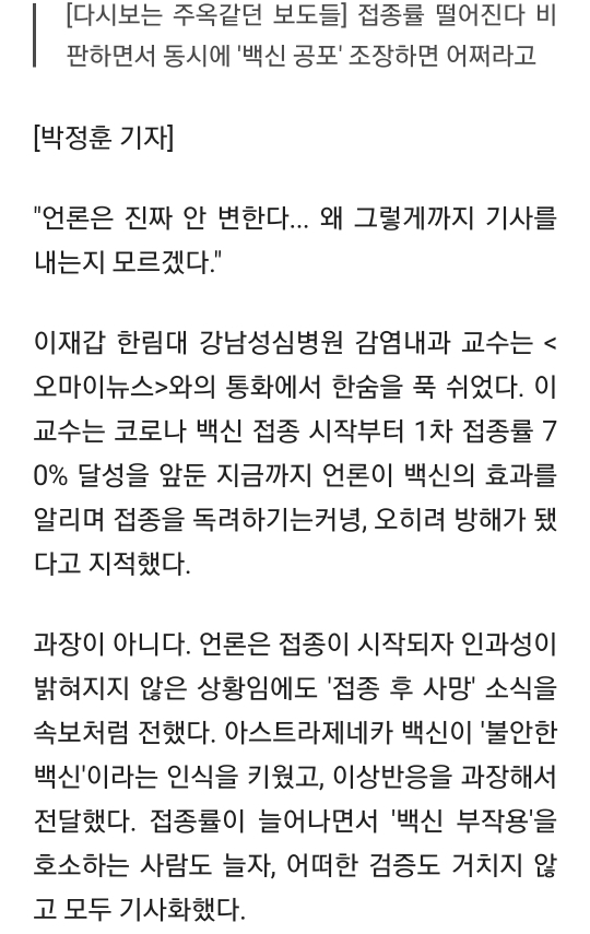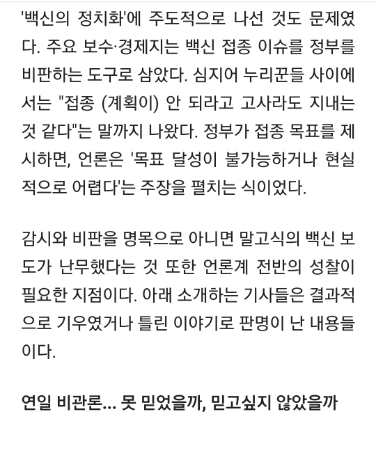 작성자구업쌓지말자 작성시간 21.09.17 최소한 팩트 체크는 해야지 무작정 청원글에 올라오는 자극적인 인용 따와서 보도나해대니 사실정정해도 쉴드치는 사람 취급받고 또 백신관련 자극적인 보도 나오면 거기에 휘둘리는 사람 개많을듯