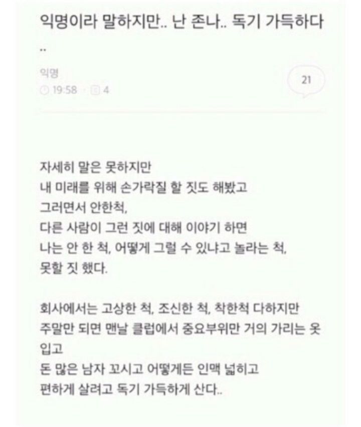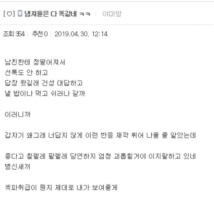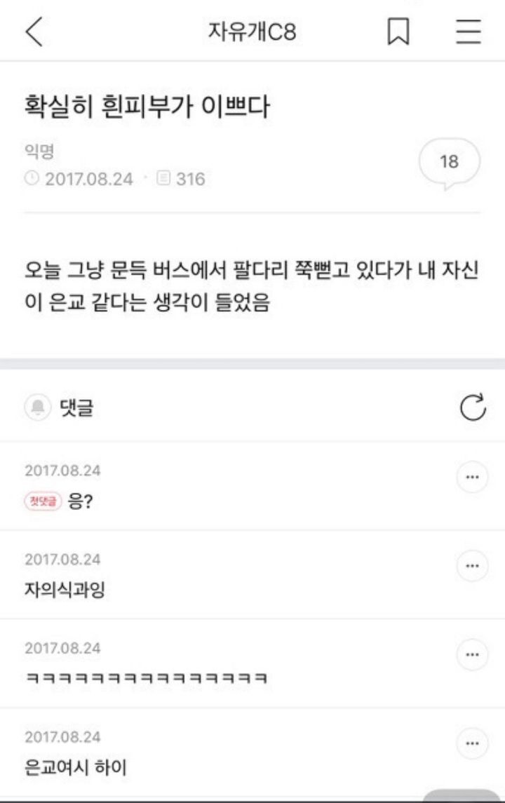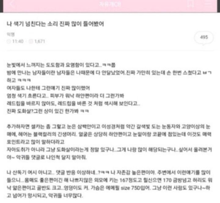 작성자페기구 작성시간 21.12.23 저 자의식과잉이라고 말해주는댓글이 존나웃겨뒤짐
