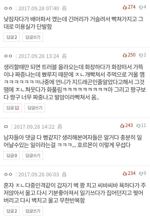 [스크랩] [흥미돋]너네 생리할때 충동적으로 했던 행동 있음? 작성자모래와 바다|작성시간21.09.20|조회수7,572 목록 댓글 40 글자크기 작게가 글자크기 크게가 출처 : https://m.pann.nate.com/talk/338906498그러니까 깝치지말자 다음검색 스크랩 원문 : *여성시대* 차분한 20대들의 알흠다운 공간 현재 게시글 추가 기능 열기 북마크 공유하기 신고 센터로 신고 댓글 댓글 40 댓글쓰기 답글쓰기 댓글 리스트 삭제된 댓글입니다. 답댓글 작성자엘피글린다친구면나친구없어 | 작성시간 21.09.20 헐 맨인블랙갱얼쥐됐어 작성자대명동 | 작성시간 21.09.20 그때 돈 100만원 있었는데 반년 후 유럽여행 티켓끊음...ㅎ 98만 7천원 아샤나... 그리고 나서 여행비 모으려고 알바 존나 열심히 했다...^^ 작성자열한시육분 | 작성시간 21.09.20 생리때마다 헤어지자 함 작성자R=VD 이번주 로또 1등 당첨됐다. | 작성시간 21.09.20 치킨 시켜서 먹기싫어서 그대로 놔둔적있음 댓글 전체보기