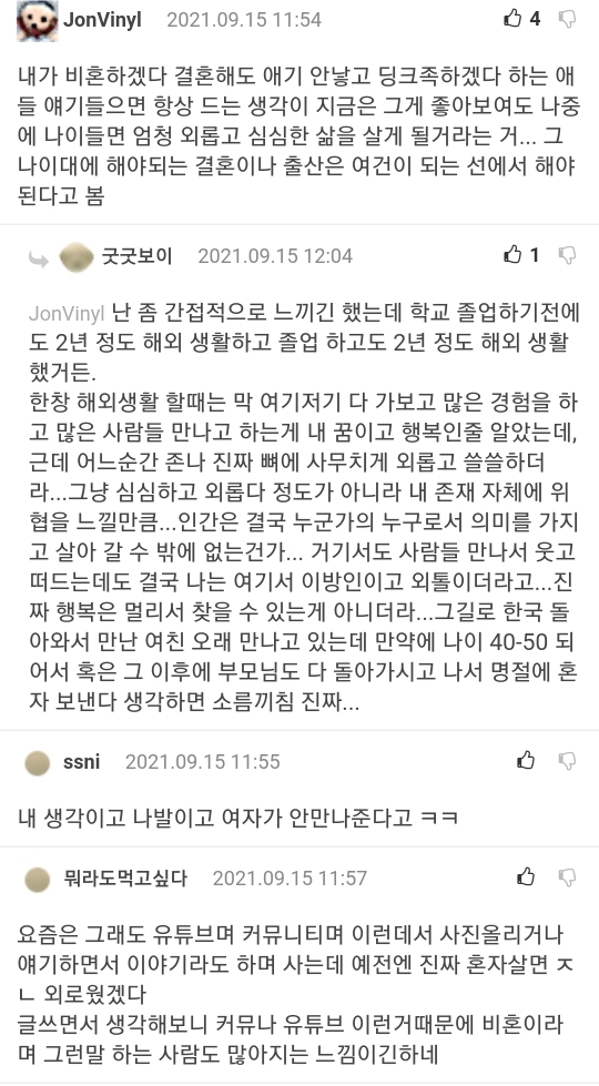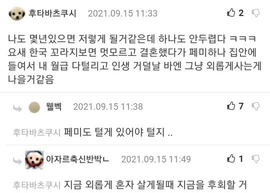 페미한테 월급 다 털릴바에 외롭게 살거다
