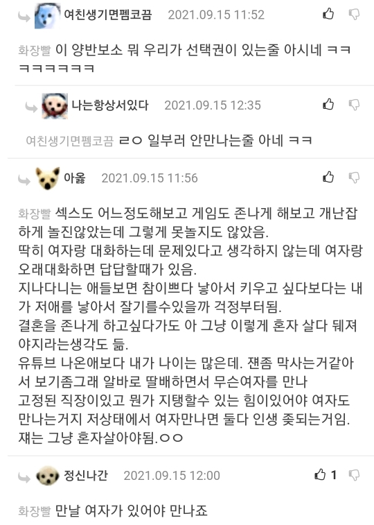 안만나는게 아니라 만나고 싶어도 못만난다 빼액거리는 도태(예정)남들