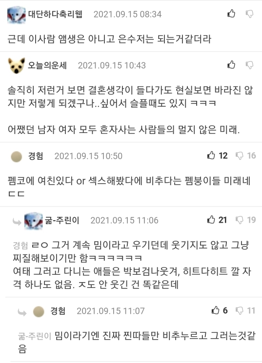 ㄴ여혐때문에 연애포기하는게 아니라 도태되니까 여혐하고 강제로 연애포기당하는거임