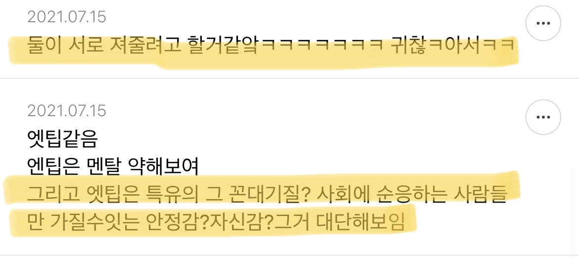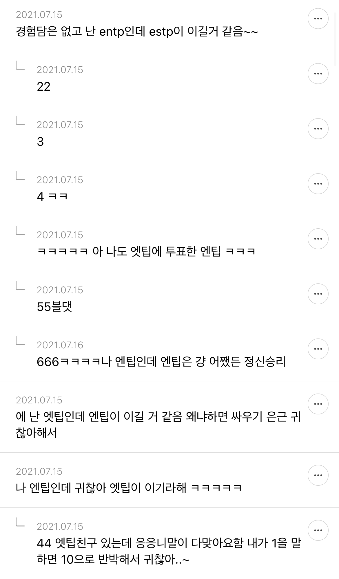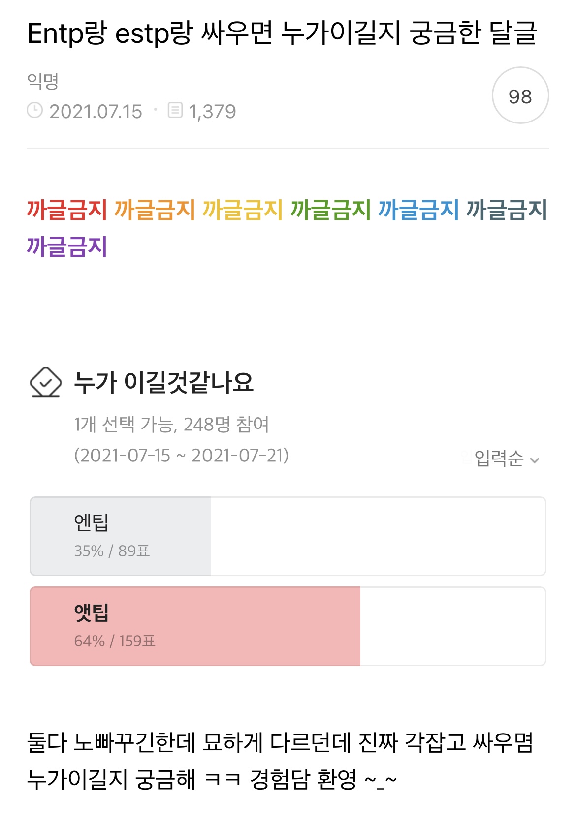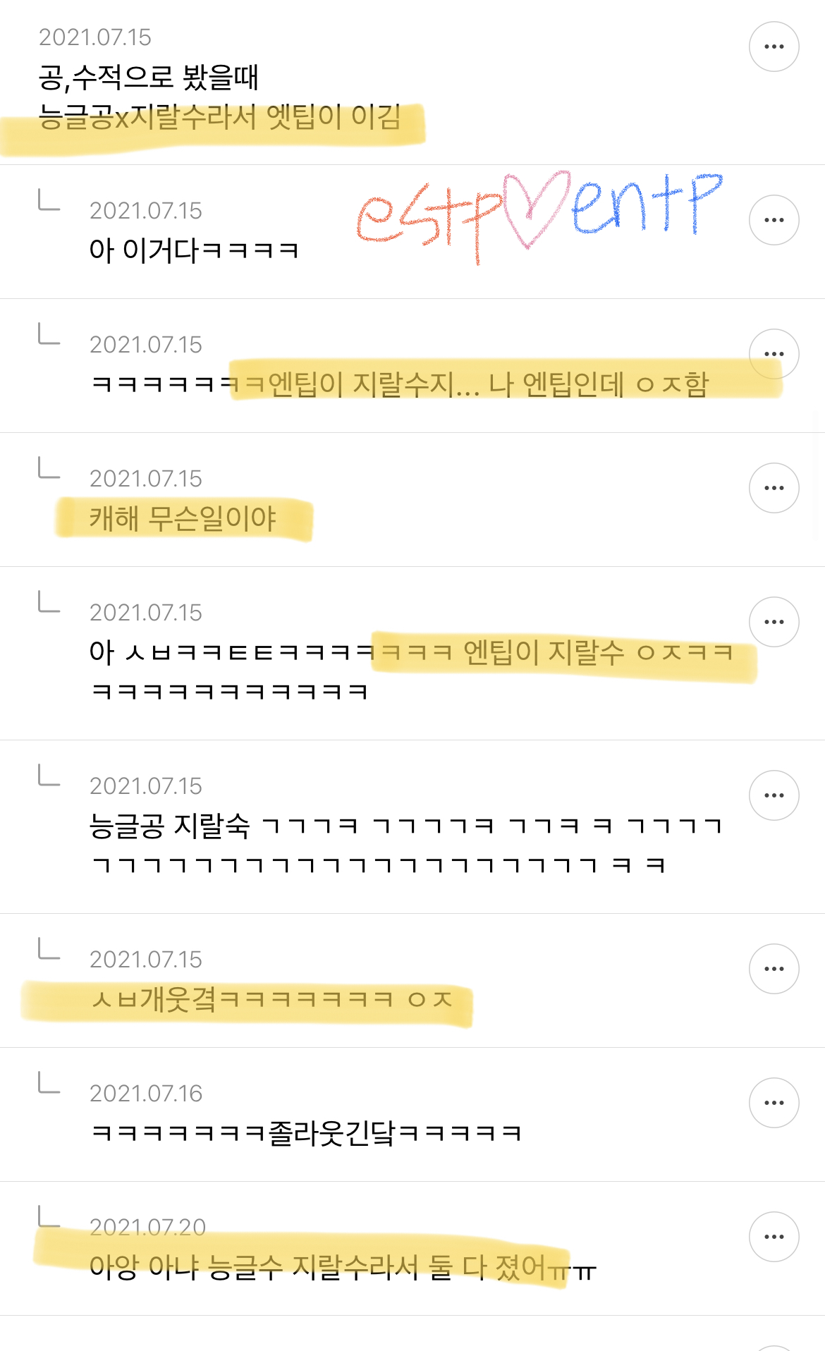 [์คํฌ๋ฉ] [ํฅ๋ฏธ๋](๋ฌ๊ธ์บก์ณ) ๐ค๐คEntp๋ estp๋ ์ธ์ฐ๋ฉด ๋๊ฐ์ด๊ธธ์ง ๊ถ๊ธํ ๋ฌ๊ธ๐ง๐ง
