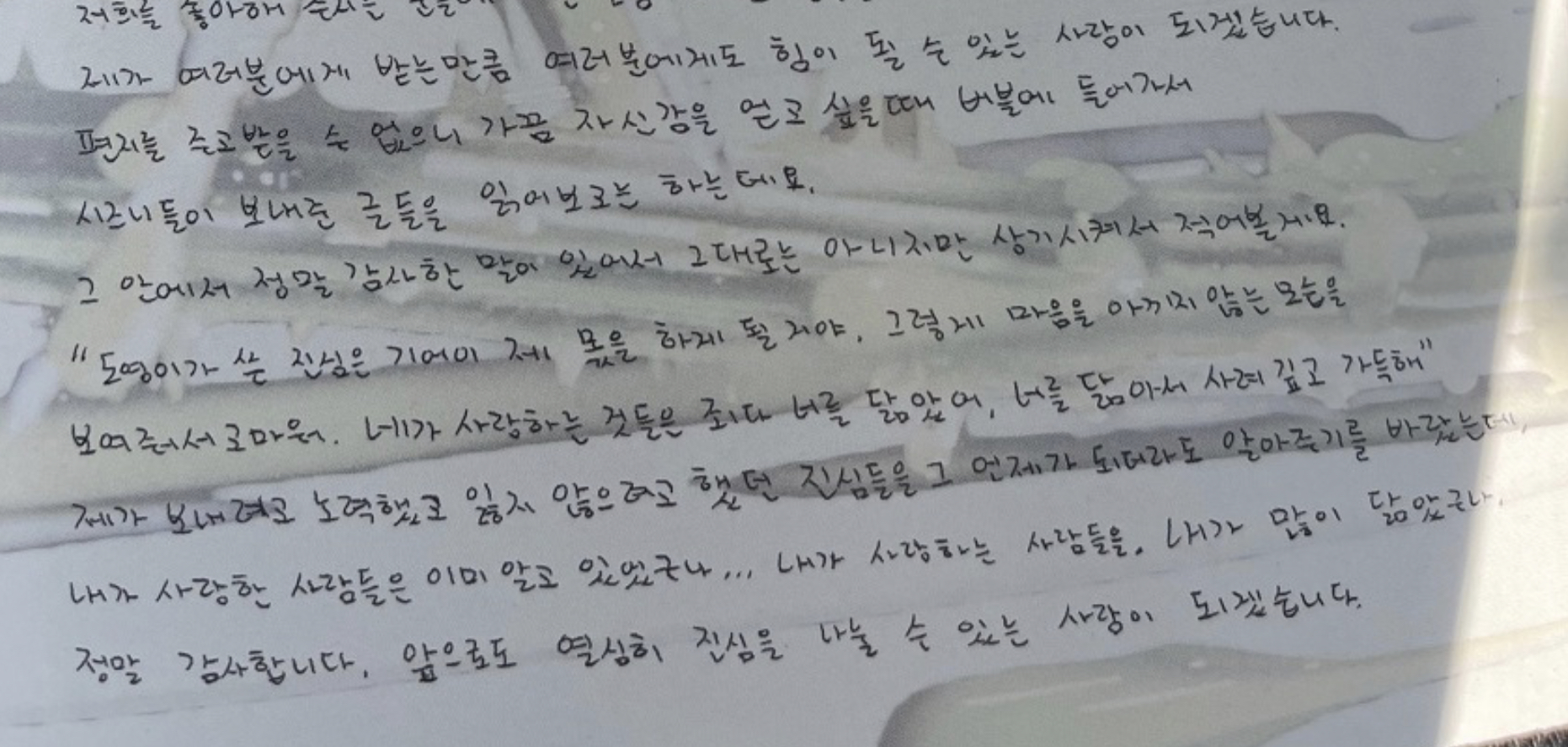 내가 이 글을 쓰면서 팬분이 보내준 내용을 읽고