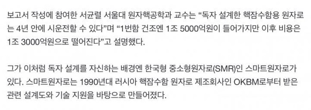 사온 다음에 국방부 가서 보여주니까 바로 연구비 480억 나옴. 그렇게 10년 넘는 세월동안 씹고 뜯고 맛고고 즐기며 역설계까지 함. 그렇게 기술실증용으로 크기를 키운 33만kW급 스마트원자로를 만들어내는데 성공함. 외부에는 해수 담수화용 플랜트 원자로라고 홍보함.