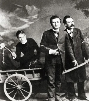 채찍을 든 사람이 루임. 니체와 레에는 계속해서 루에게 청혼했고, 루는 결국 동거하던 집을 떠남. 당시 안드레아스라는 동양언어학자가 루에게 너랑 결혼 못할 바엔 죽는 게 낫다고 열렬히 청혼했었는데, 루는 섹스 없는 결혼생활을 유지하며 다른 남자를 자유롭게 만나는 걸 조건으로 안드레아스와 결혼함. 이후 니체는 우울증에 빠지고, 레에는 한때 루와 철학을 토론했던 절벽에서 투신자살함.