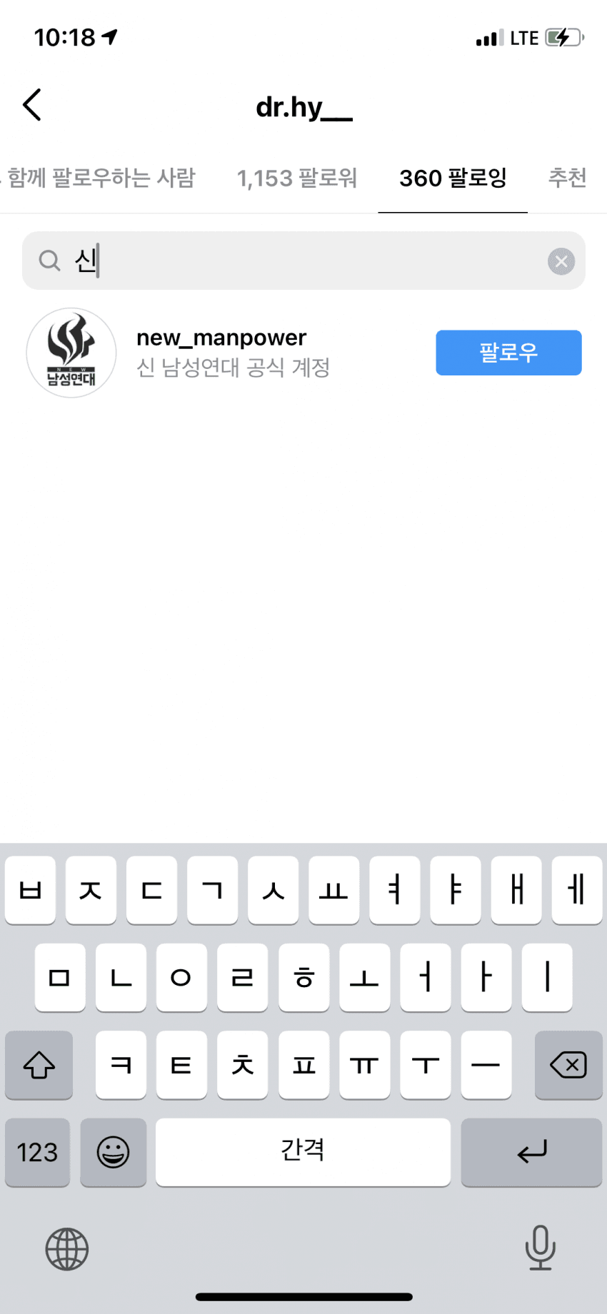 나는솔로 2기 영식의 인스타 팔로우 목록