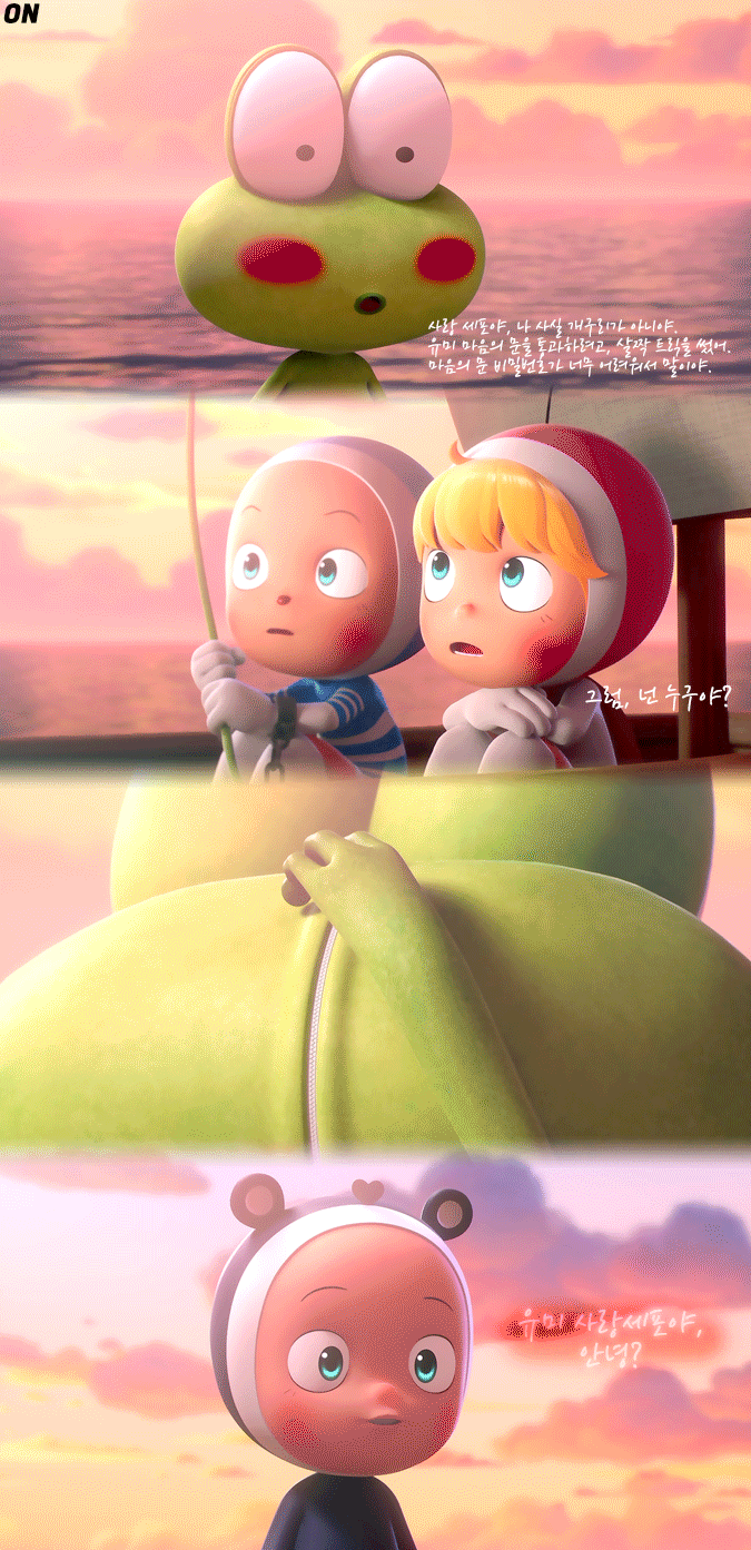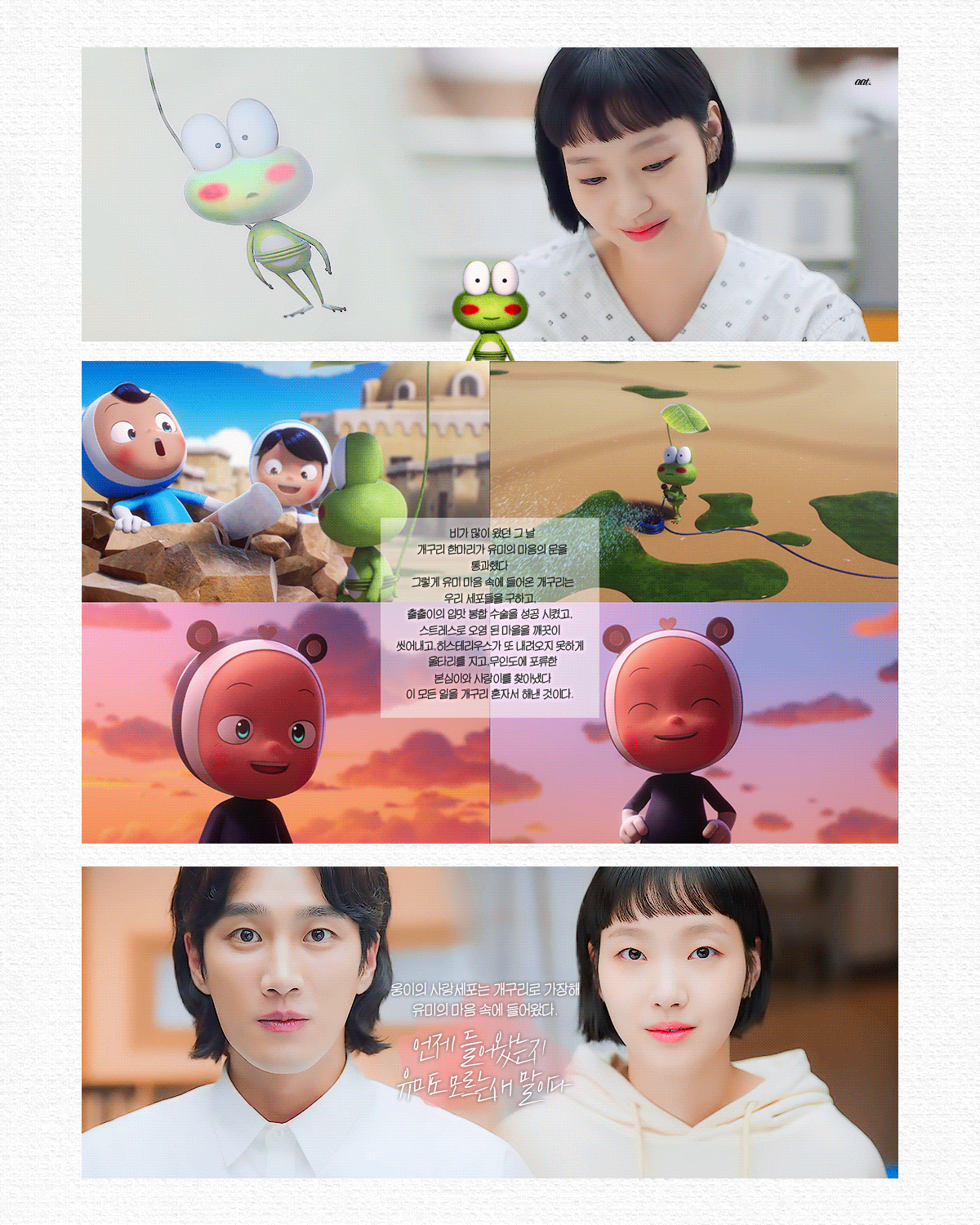 옷이 젖은 유미를 위해 개구리가 그려진 원피스를 선물함