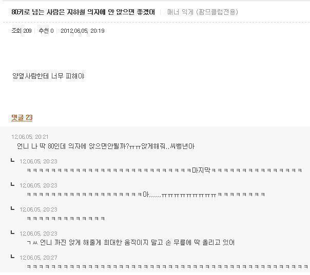 [스크랩] [배꼽의행방]80키로 넘는 사람은 지하철 의자에 안 앉으면 좋겠어 작성자이상해씨짱팬|작성시간21.10.12|조회수18,473 목록 댓글 39 글자크기 작게가 글자크기 크게가 다음검색 스크랩 원문 : 성공 다이어트 / 비만과의 전쟁 현재 게시글 추가 기능 열기 북마크 공유하기 신고 센터로 신고 댓글 댓글 39 댓글쓰기 답글쓰기 댓글 리스트 삭제된 댓글입니다. 답댓글 작성자올드셀린 | 작성시간 21.10.12 ㅁㅈ 본인은 유쾌하게 답 단줄 알겠지,,, 으 답댓글 작성자매무니귀여웡 | 작성시간 21.10.12 ㄱㄴㄲ;;;;;;;;;;; 노잼 작성자우리는당신밖에모른다 | 작성시간 21.10.12 아 ㅈㄴ 웃겨 ㅠ 작성자다정한유전 | 작성시간 21.10.12 댓쓴 사람 재치 쩌는데 글쓴 사람은 끝까지 ㅋㅋ 댓글 전체보기