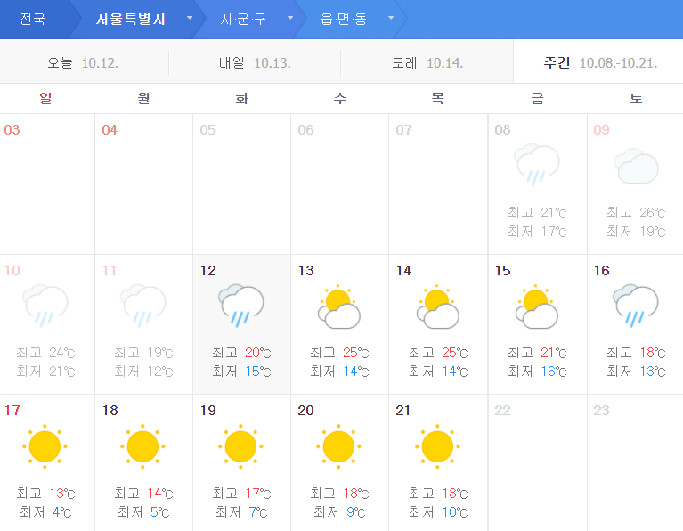 서울 기준 주간 날씨 예보