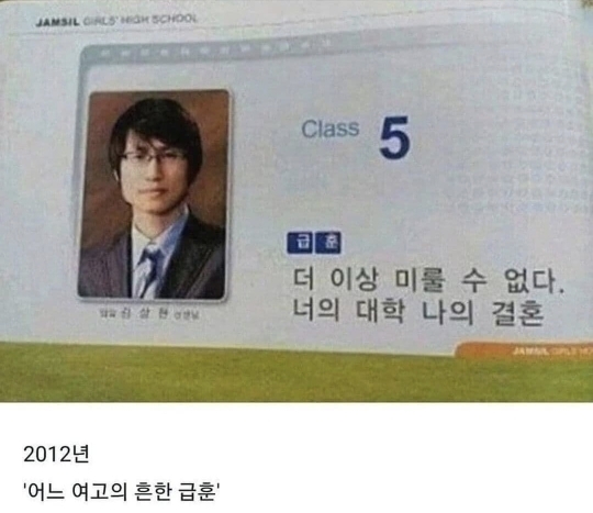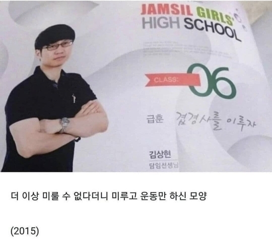 [흥미돋]어느 여고의 급훈 (결혼이 급한 담임 선생님) 작성자시츄냥냥|작성시간21.10.12|조회수5,429 목록 댓글 13 글자크기 작게가 글자크기 크게가 출처 : 여성시대 시츄냥냥https://www.instagram.com/p/CU2CNTxhrta/?utm_medium=copy_link 다음검색 현재 게시글 추가 기능 열기 북마크 공유하기 신고 센터로 신고 댓글 댓글 13 댓글쓰기 답글쓰기 댓글 리스트 작성자졸라뤼매운게먹고싶어 | 작성시간 21.10.12 1번 무슨 조뽄영화 타이틀같앜ㅋㄱㅋㄲ 작성자보석썬그리어때여..? | 작성시간 21.10.12 재밌으셔ㅋㅋㅋㄱ 작성자춘삼제너럴1세 | 작성시간 21.10.12 아 개웃기네 겹경사 ㅋㅋㄱㅋㄱㅋㄱㅋㄲㅋㅋ 작성자매워요 | 작성시간 21.10.12 이분 결혼 하셨다고 인터넷에서 봤음ㅋㅋ 작성자인공잔듸 | 작성시간 21.10.12 급훈이 이종수 너마저얔ㅋㅋㅋㅋㅋㅋㅋㅋ도랏ㅋㅋㅋㅋㅋㅋㅋㅋ 댓글 전체보기