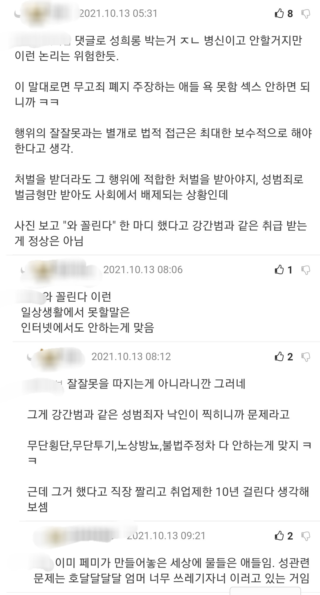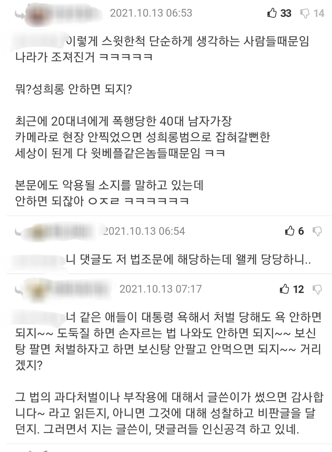 통매음에 관한 지식을 나누던 남성인권수호자분들..