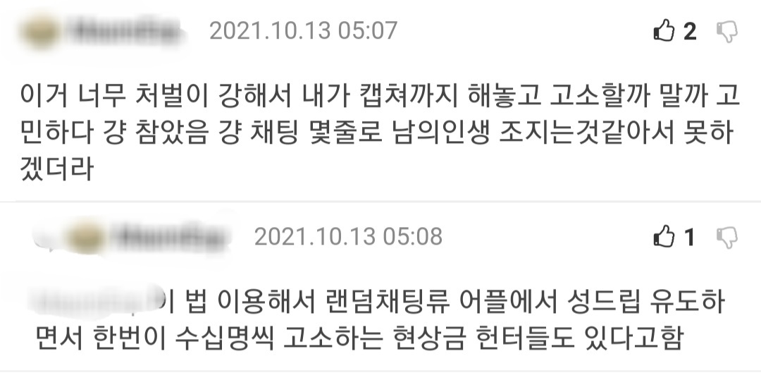통매음갤러리나 네이버카페, 로톡 보면 남자한테 고소 당했다는 남자들 엄청 많아. 그리고 여자인척 성희롱 유도해서 고소하겠다는 남자들도 개많음~