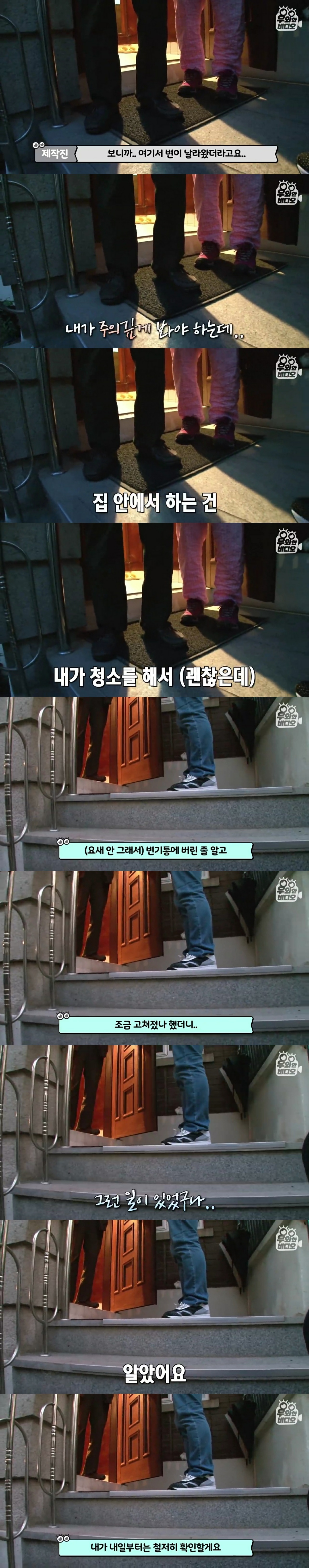 [스크랩] [흥미돋]6개월째 누가 골목에 똥을 던져서 CCTV를 설치해봤더니..jpg (똥주의) 작성자아이마이|작성시간21.10.17|조회수7,672 목록 댓글 31 글자크기 작게가 글자크기 크게가 출처 :https://youtu.be/btXMOpPViU4모자이크된 똥 나오니까 주의!!!! 다음검색 스크랩 원문 : *여성시대* 차분한 20대들의 알흠다운 공간 현재 게시글 추가 기능 열기 북마크 공유하기 신고 센터로 신고 댓글 댓글 31 댓글쓰기 답글쓰기 댓글 리스트 작성자morning americano | 작성시간 21.10.17 헐......ㅠㅠ 작성자올해로또1등당첨 | 작성시간 21.10.17 찡... 작성자날밤 맞추기 | 작성시간 21.10.17 아니 딱봐도 맞은편에서 던졋을텐데.. 경찰은 뭐하는거.?.? 작성자잠이부족해 | 작성시간 21.10.17 마음이 정말 넓으신분이시다 ㅜ 난 저렇게 못해 작성자허거걱 | 작성시간 21.10.17 눈물이 나네 ㅠㅠㅠㅠㅠ 댓글 전체보기