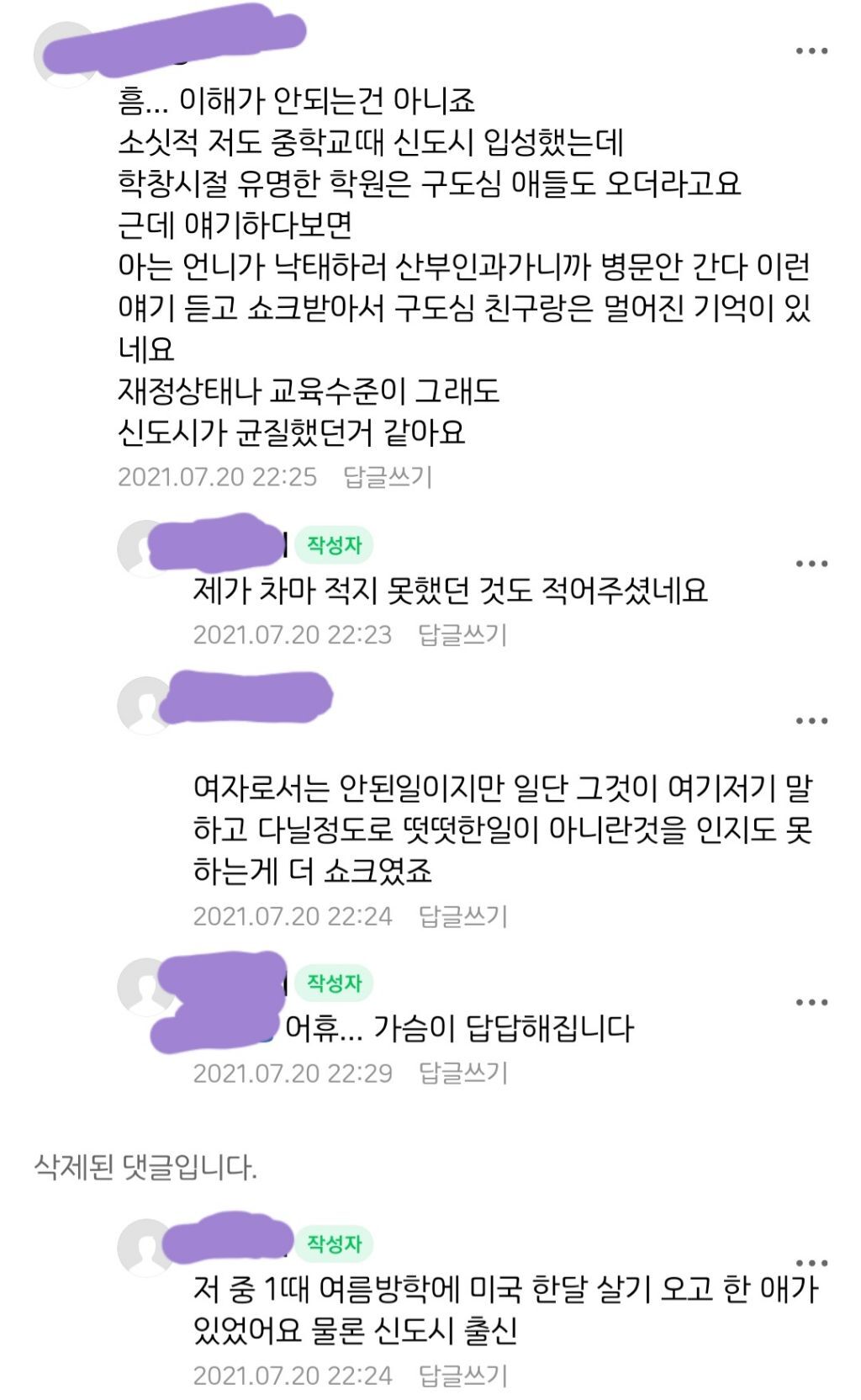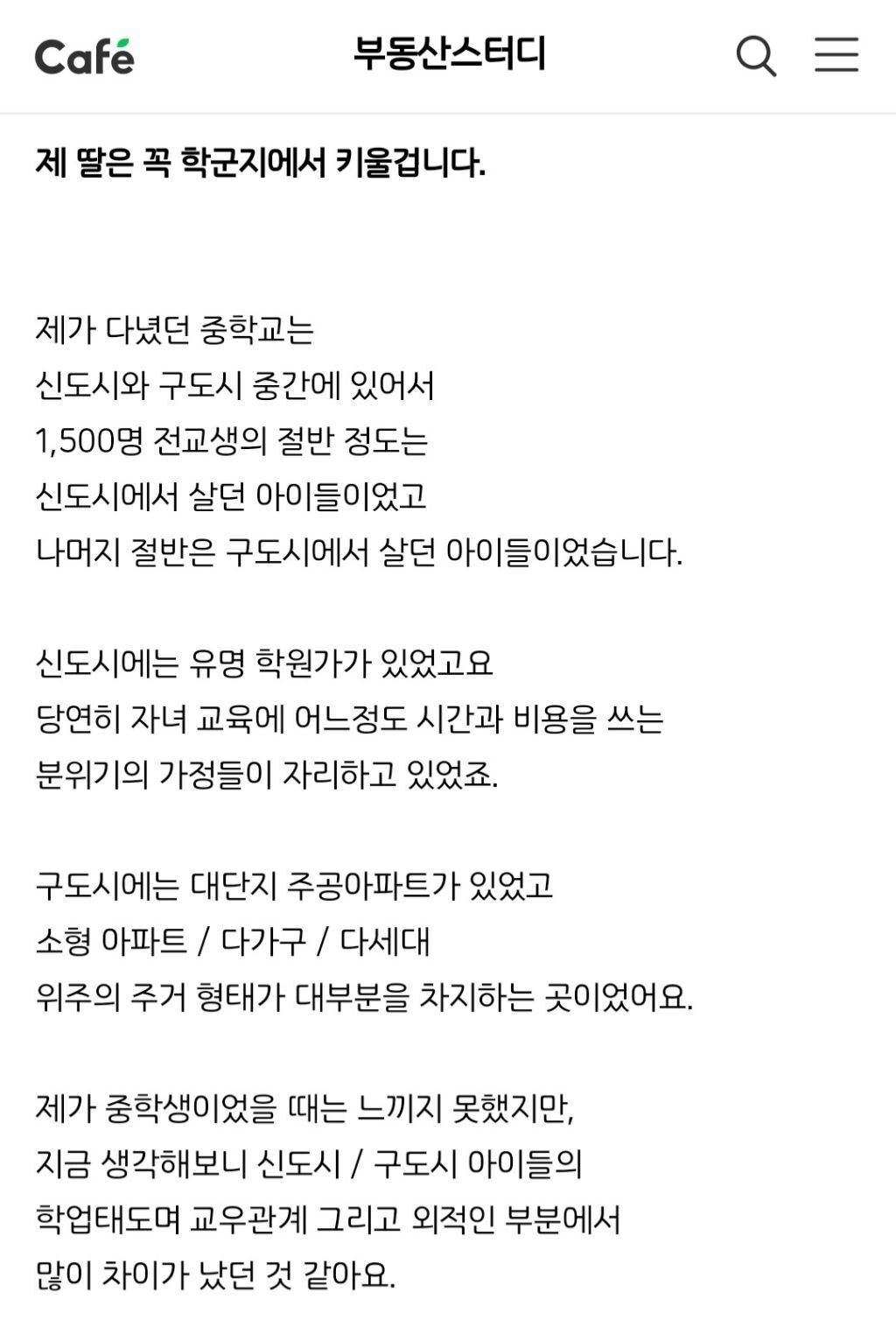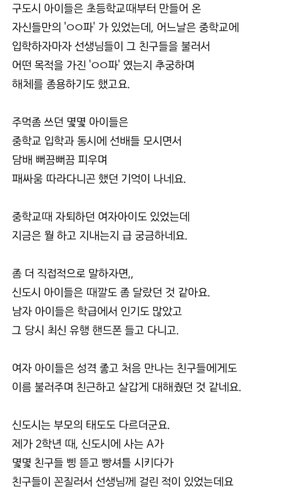 작성자good that 만난 good 사람 작성시간 21.10.18 저 사람이 어릴 때면 20년 이상 전 신도시구도시겠지 나도 딱 개천 하나로 신도시 구도시 나뉘고 신도시는 유명한 학원가 있는 곳에서 커서 정확하게 알겠음