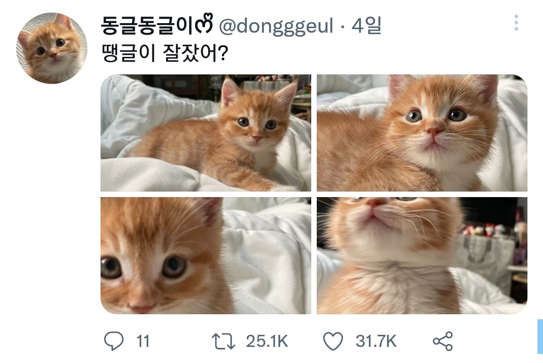작성자사이버펑크 작성시간 21.11.24 고양이들 알티 잘 타는 편인데도 저번부터 동글이 볼때마다 알티수 장난 아니더라.. 너무귀엽긴해