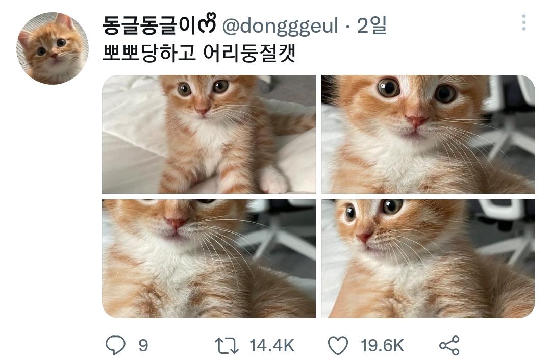 작성자못이겨킹ㅋ 작성시간 21.10.22 어떡해......... 너무너무너무너무너무너무너무 귀엽다... 아기고양이라서 털이 뿌슝뿌슝 하다고 해야되나 암튼간에... 그게 너무너무너무너무 귀여ㅝ,,,,,,