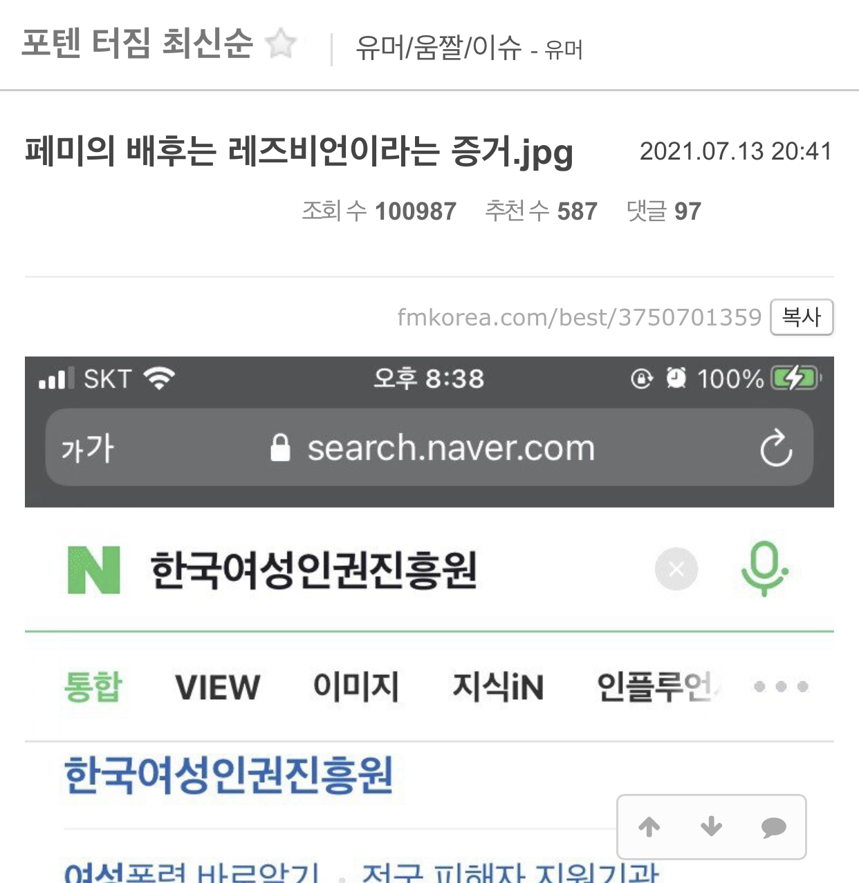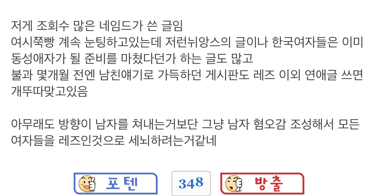 작성자터치펜또없어졌네 작성시간 21.10.23 이성애여자도 등돌리게 만드는 한국남자~