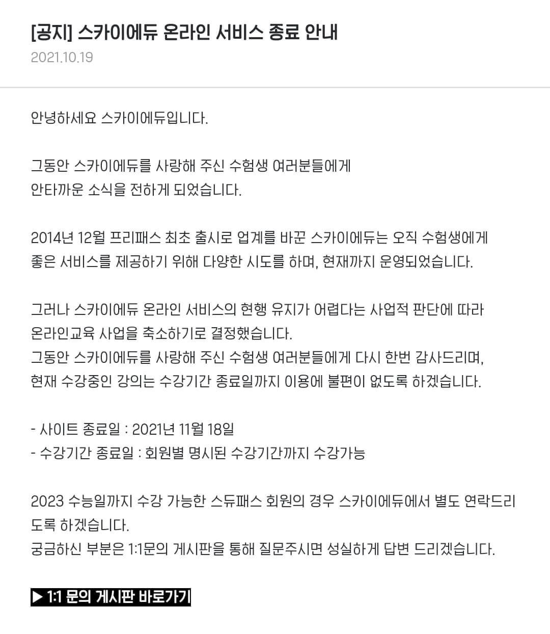2018년부터 적자에 하향세였는데 결국 종료함