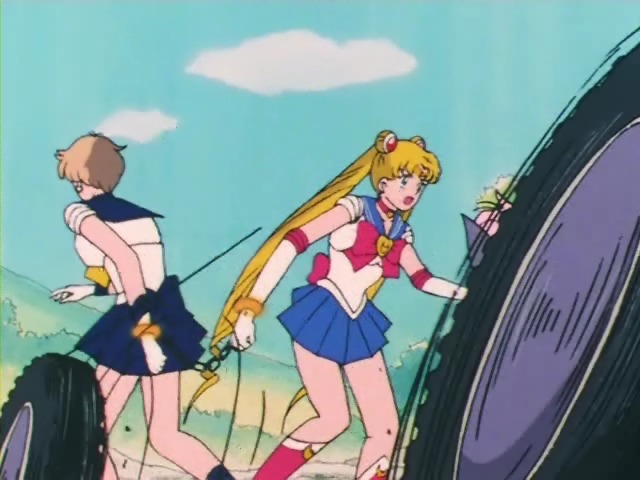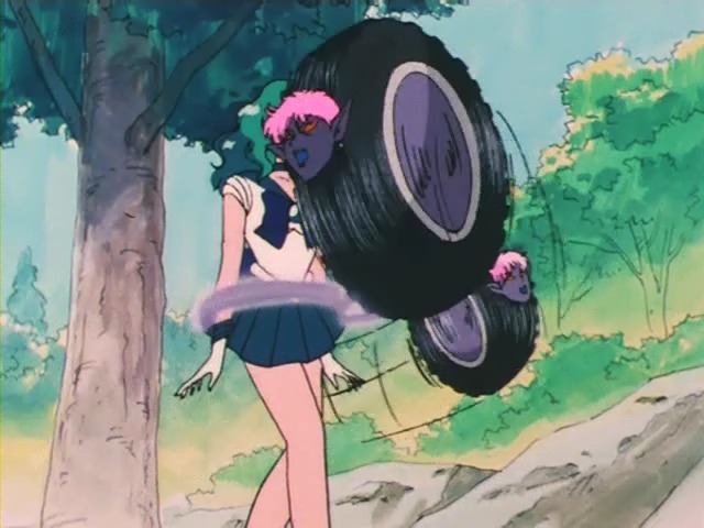 세일러문을 향해 다가오는 타이어