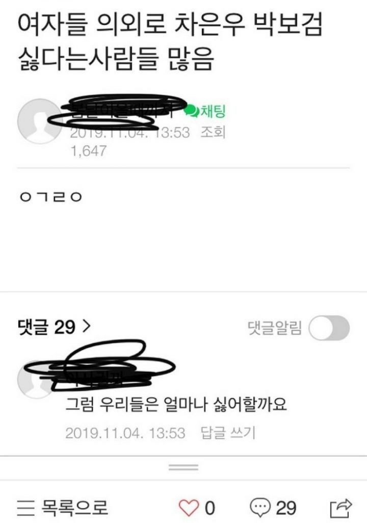 [스크랩] [흥미돋]여자들 의외로 차은우,박보검 싫어함.jpg 작성자오리는로스지|작성시간21.10.30|조회수33,557 목록 댓글 16 글자크기 작게가 글자크기 크게가 출처 : 여성시대 윈저아이스 17년산 다음검색 스크랩 원문 : *여성시대* 차분한 20대들의 알흠다운 공간 현재 게시글 추가 기능 열기 북마크 공유하기 신고 센터로 신고 댓글 댓글 16 댓글쓰기 답글쓰기 댓글 리스트 작성자박국영의폭주족마누라 | 작성시간 21.10.30 걔네는 좋아하고 너네는 걍 존나 싫어해ㅠ 작성자헛찌헛짜 | 작성시간 21.10.30 제목보고 빡쳤다가 댓글보고 안심ㅡㅡ 작성자나 왕 눈 | 작성시간 21.10.30 댓글ㅋㅋㅋㅋㅋㅋㅋㅋㅋㅋㅋㅋㅋ 작성자콰삭칩트러플솔트 | 작성시간 21.10.30 ㅋㅋㅋㅋㅋㅋㅋㅋㅋㅋㅋㅋㅋㅋㅋㅋㅋㅋ아웃겨 작성자느개비야 | 작성시간 21.10.30 ㅋㅋㅋㅋㅋㅋㅋㅋㅋㅋㅋ자기객관화 굿 댓글 전체보기