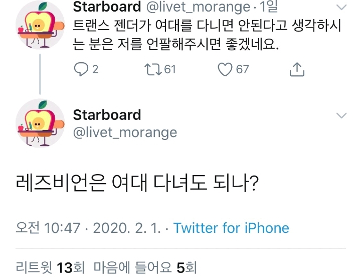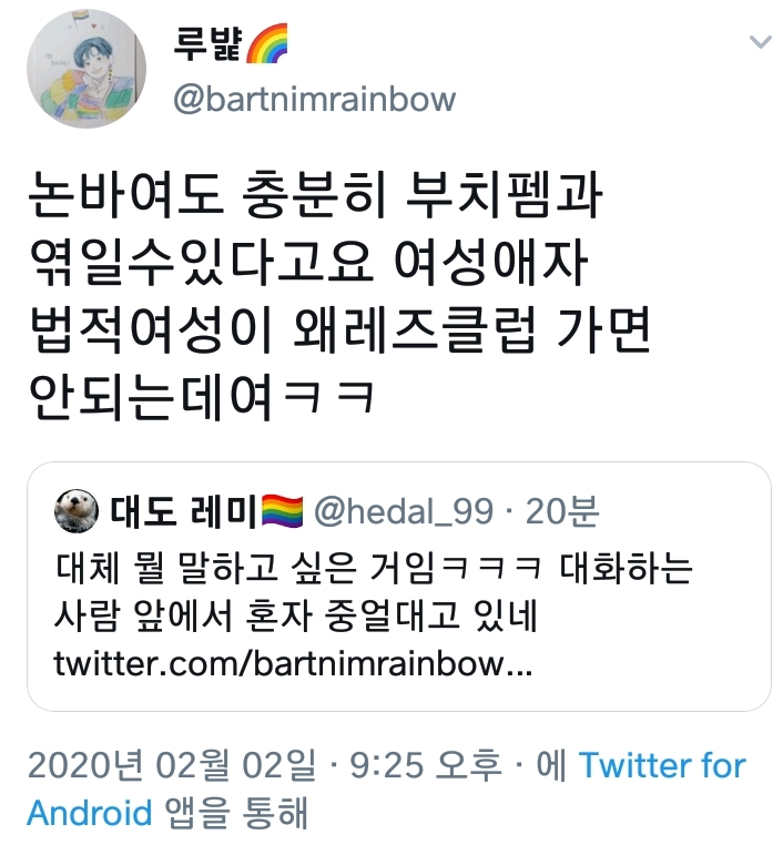 레즈비언은 여대 다녀도 되냐며 물고늘어짐
