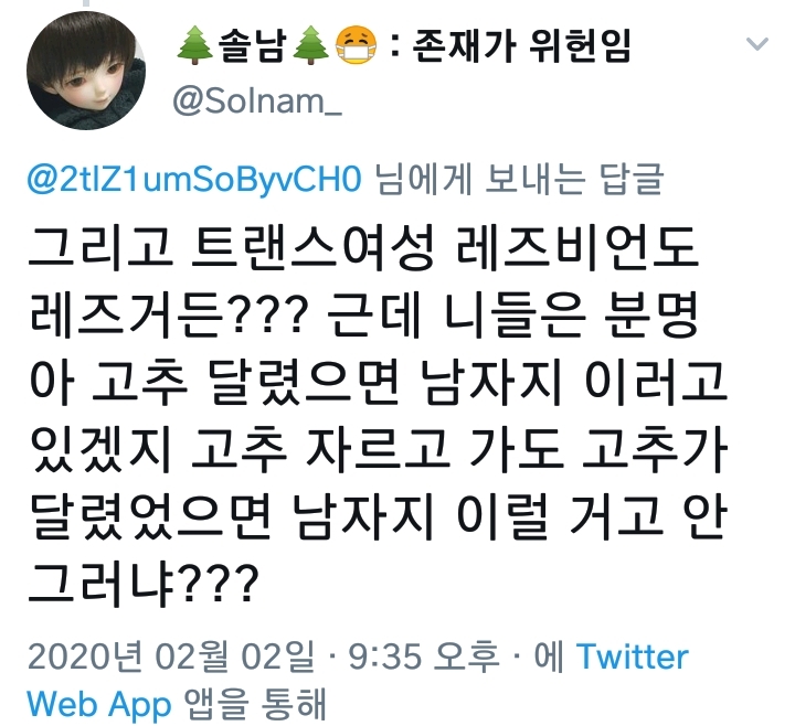 저 트윗 속 논바이너리는 생물학적 남자