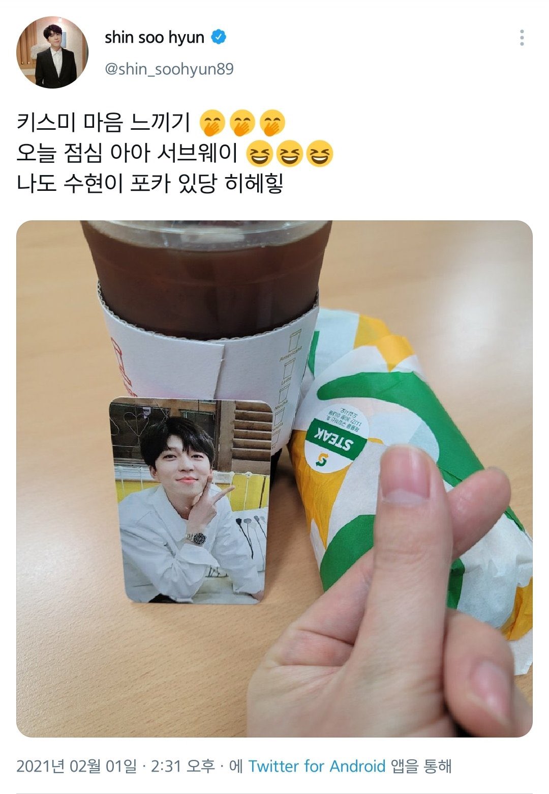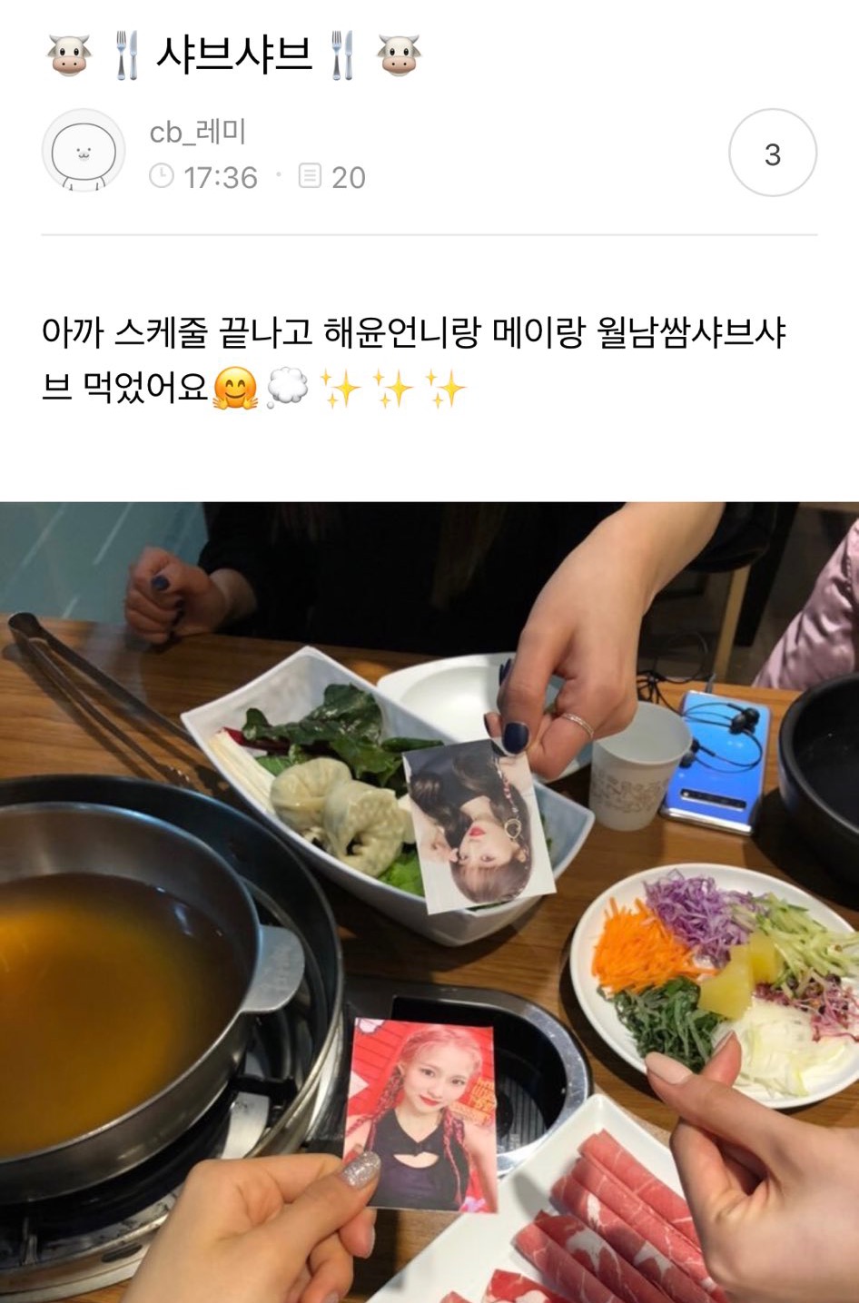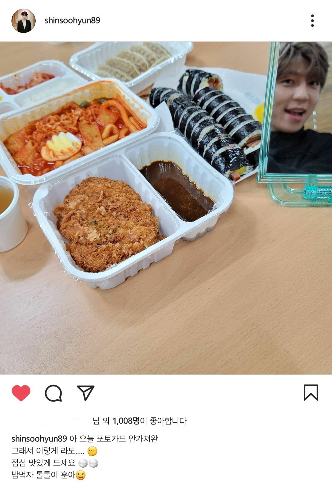 음식사진 찍을 때 본진 포카를 들고 같이 찍는 게