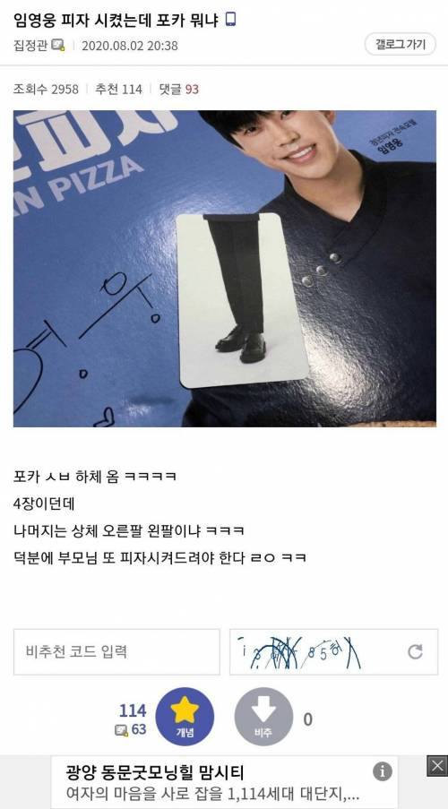 [스크랩] [흥미돋]희한한 임영웅 포카 작성자텔레비전|작성시간21.11.12|조회수14,815 목록 댓글 20 글자크기 작게가 글자크기 크게가 출처 : 여성시대 네네알겠어요이런포카 처음봄 진짜 희한해문제시 피자먹고 저거 다모음 다음검색 스크랩 원문 : *여성시대* 차분한 20대들의 알흠다운 공간 현재 게시글 추가 기능 열기 북마크 공유하기 신고 센터로 신고 댓글 댓글 20 댓글쓰기 답글쓰기 댓글 리스트 작성자Ssapphire | 작성시간 21.11.12 유희왕카드냐고 작성자헤로잉 | 작성시간 21.11.12 뒷면은 달라… 이거 올라올때마다 말해주는 중…. 뒷면은 멀쩡한 임영웅임 작성자BlackMamba | 작성시간 21.11.12 엑조디아네 완전 작성자신축년엔돈벼락 | 작성시간 21.11.12 아 진심 놀랐네 ㅋㅋㅋ 작성자슈퍼빔 | 작성시간 21.11.12 엑조디앜ㅋㅋㅋ 댓글 전체보기