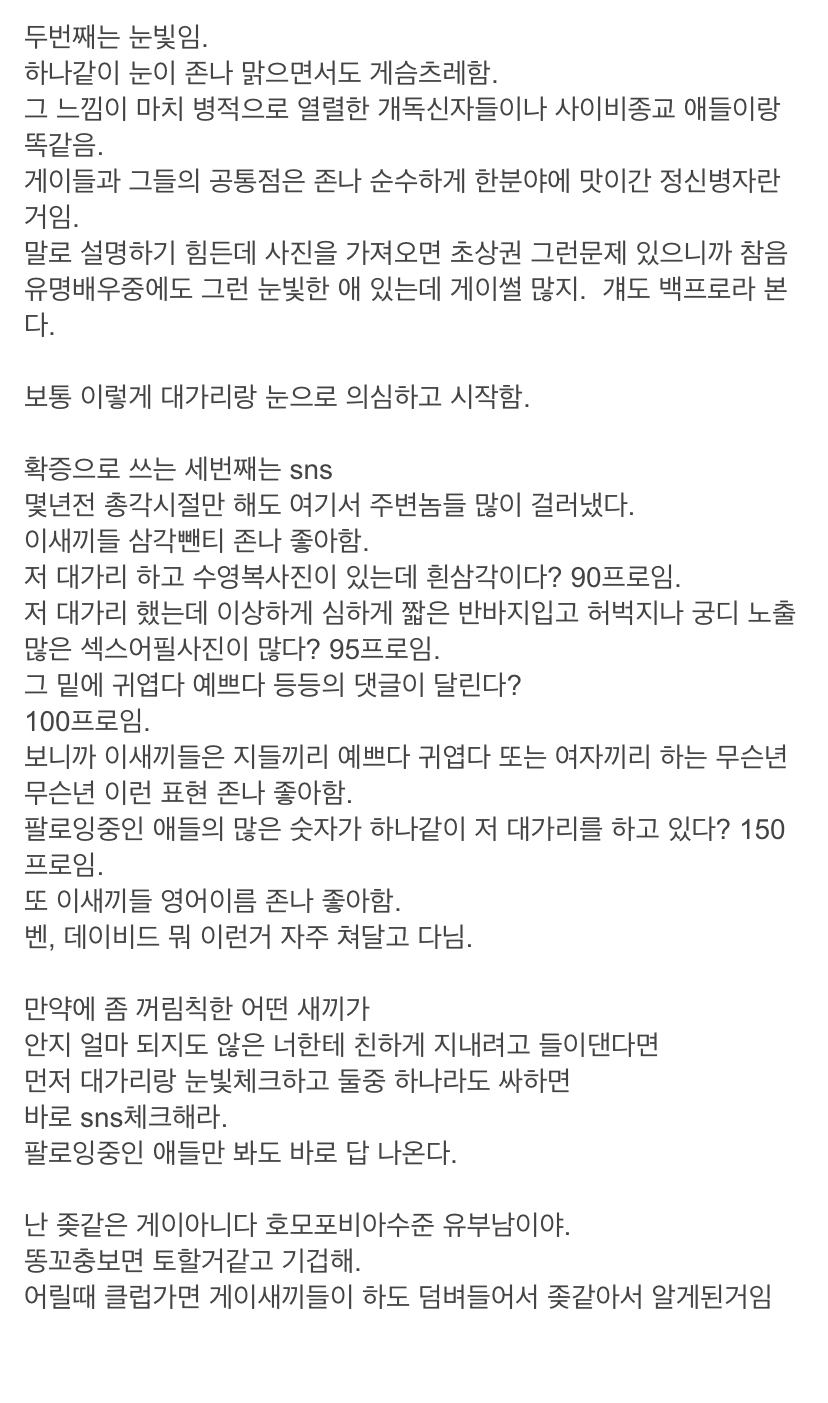 작성자으에 작성시간 21.11.14 나한테 게이 확신하게 하는 건 하관... 그냥 누굴 쳐다볼 때도 하관이 약간 나 섹시하지? 를 보여주려는 느낌...? 하관을 약간 부정교합처럼 내밀면서 아랫입술 지긋이 깨무는 그런 느낌인데 설명이 제대로 안되네ㅜㅜ