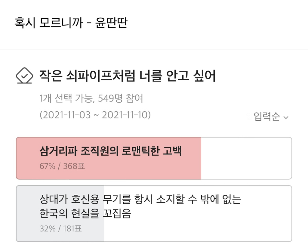 작성자루비루방 작성시간 21.11.15 아 웃겨뒤지겠넼ㅋㅋㅋㅋㅋㅋㅋㅋㅋㅋ