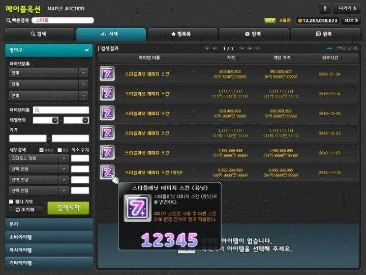 현재 루나 서버 기준으로 유닛이 아닌 일반 데미지스킨 조차 형성된 가격은 30억메소