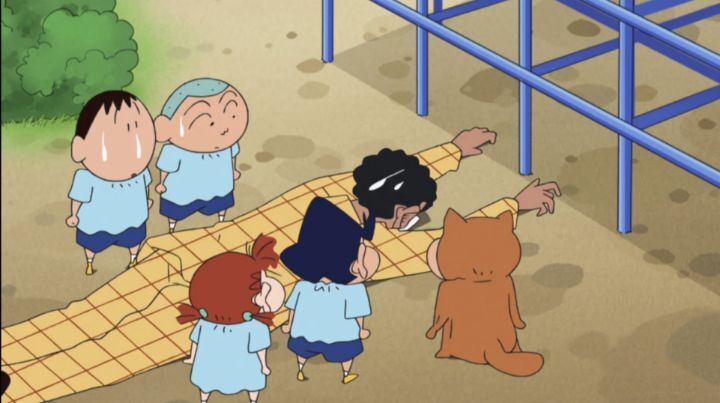 짱구: 어제 두목님이 정글짐에서 다이빙해서?
