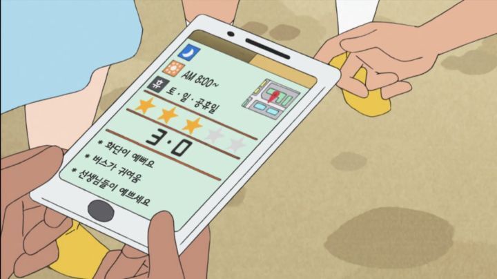 스마트폰 들고 온 철수가 유치원 평점보는데