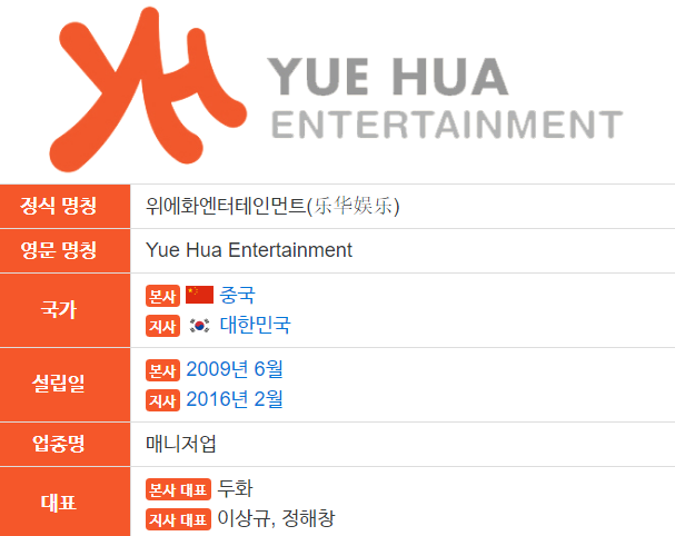 줄여서 위에화 오락乐华娱乐, 위에화 엔터테인먼트